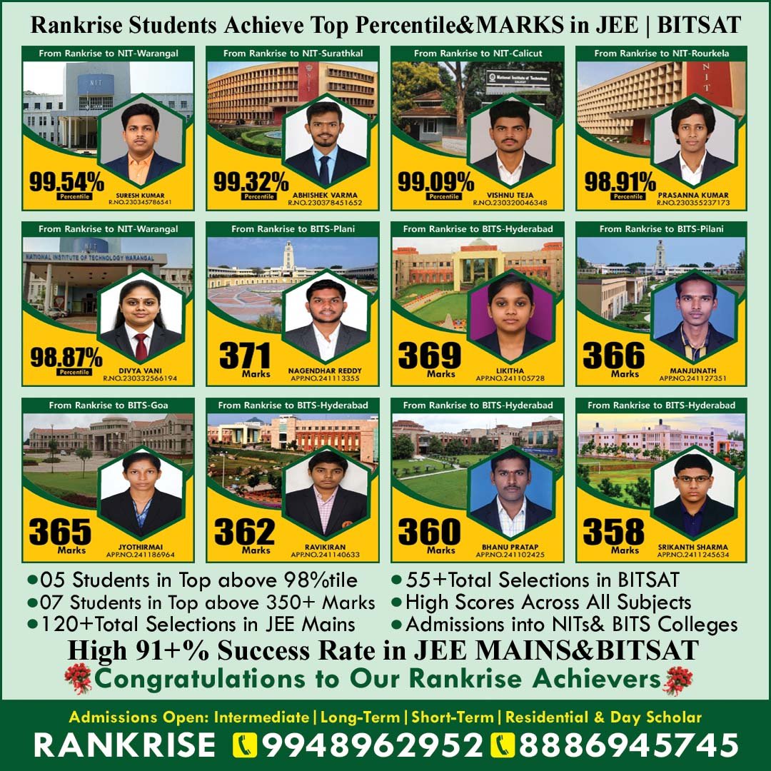 Every year, Rankrise students secure top ranks and admissions in IITs, NITs, and top engineering institutes — proving that success begins here.